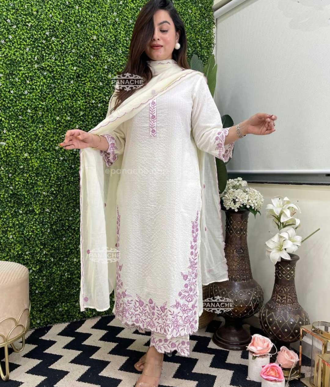 Pure fine KATHA COTTON fabric Straight kurti with pant and dupatta.
