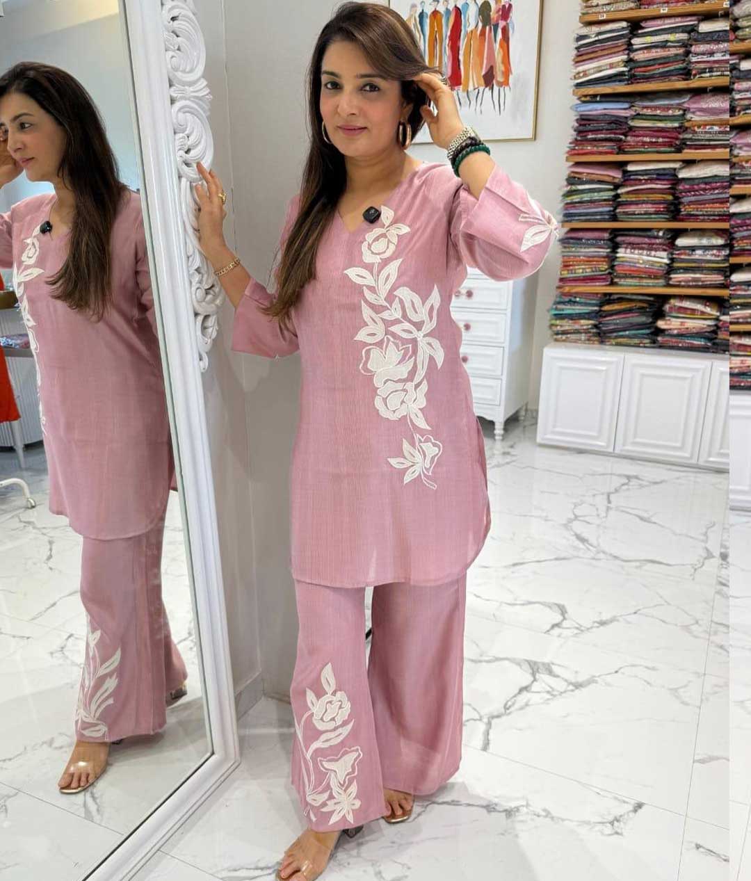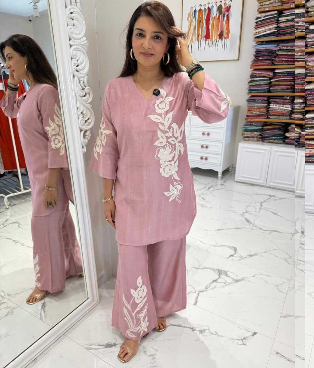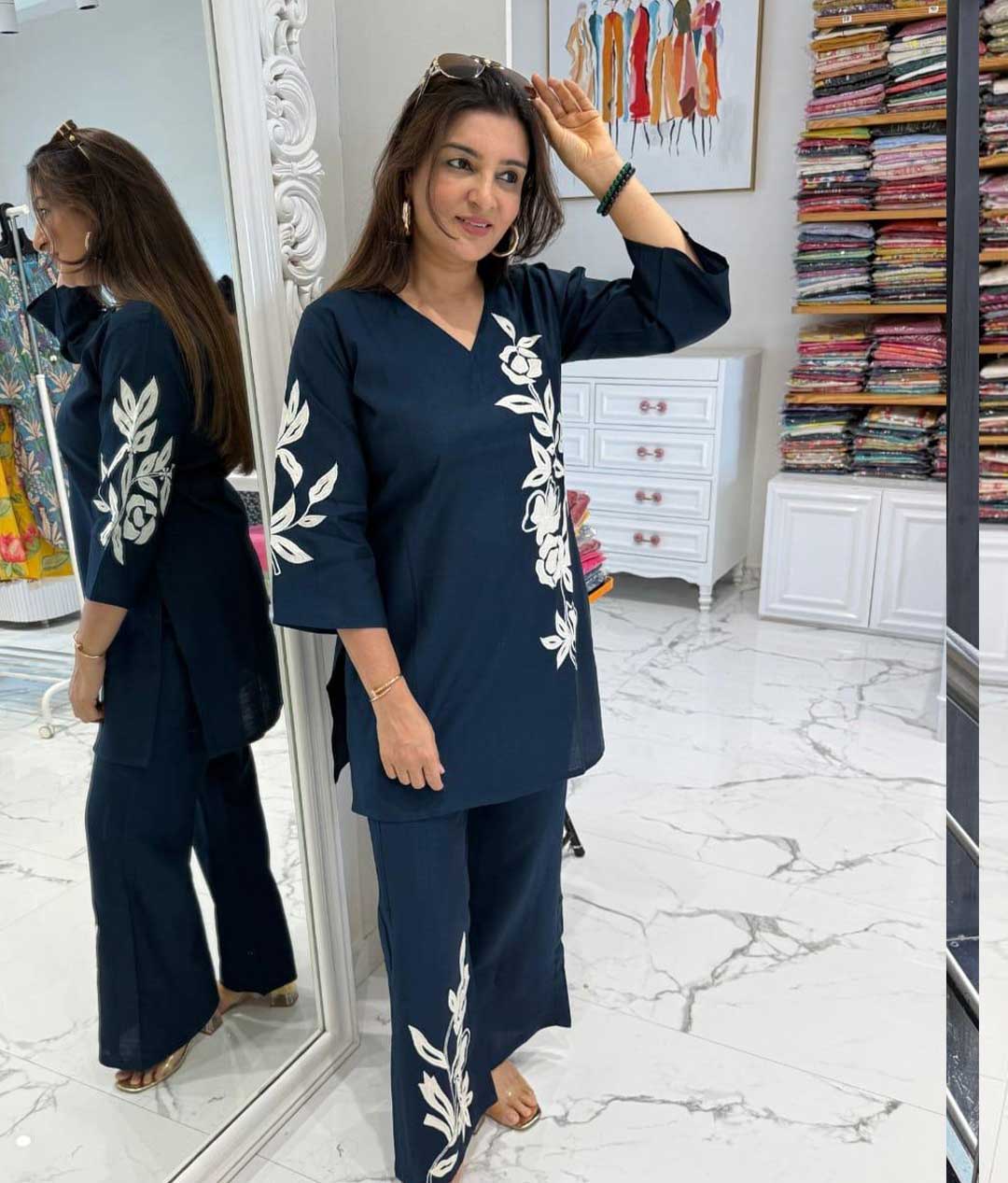 Be the first to review “floral appliqué work Cotton Cord Set” Cancel reply
