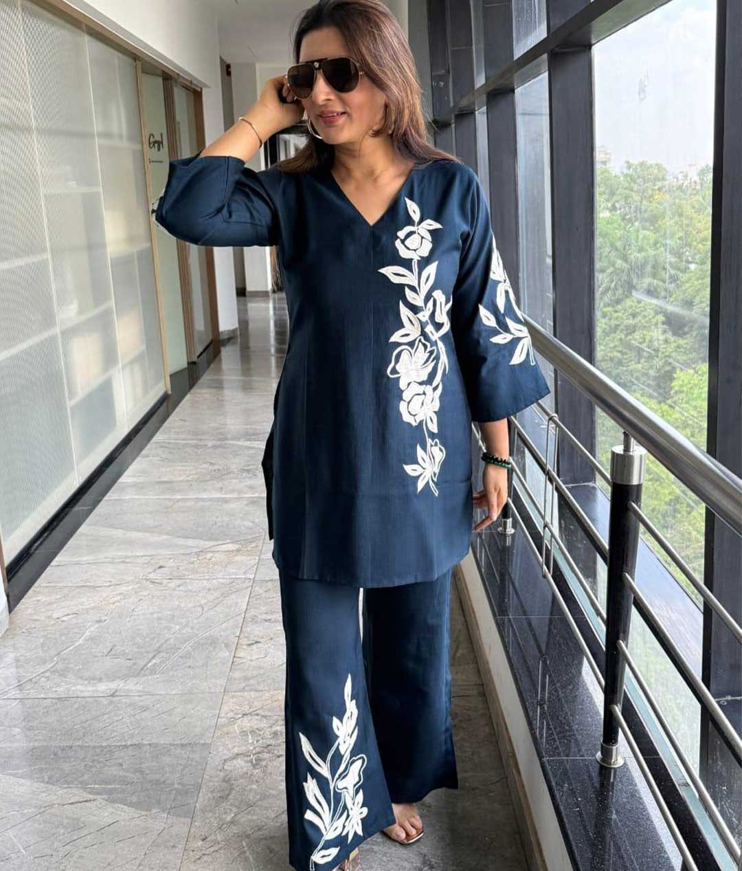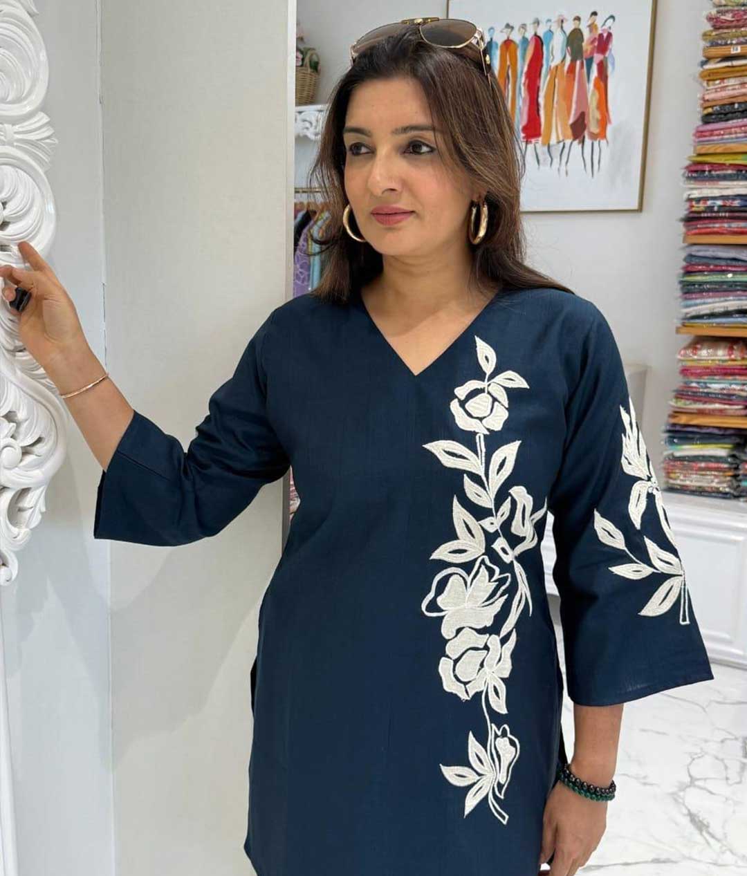 Work- Embroidery work on all over kurti pant