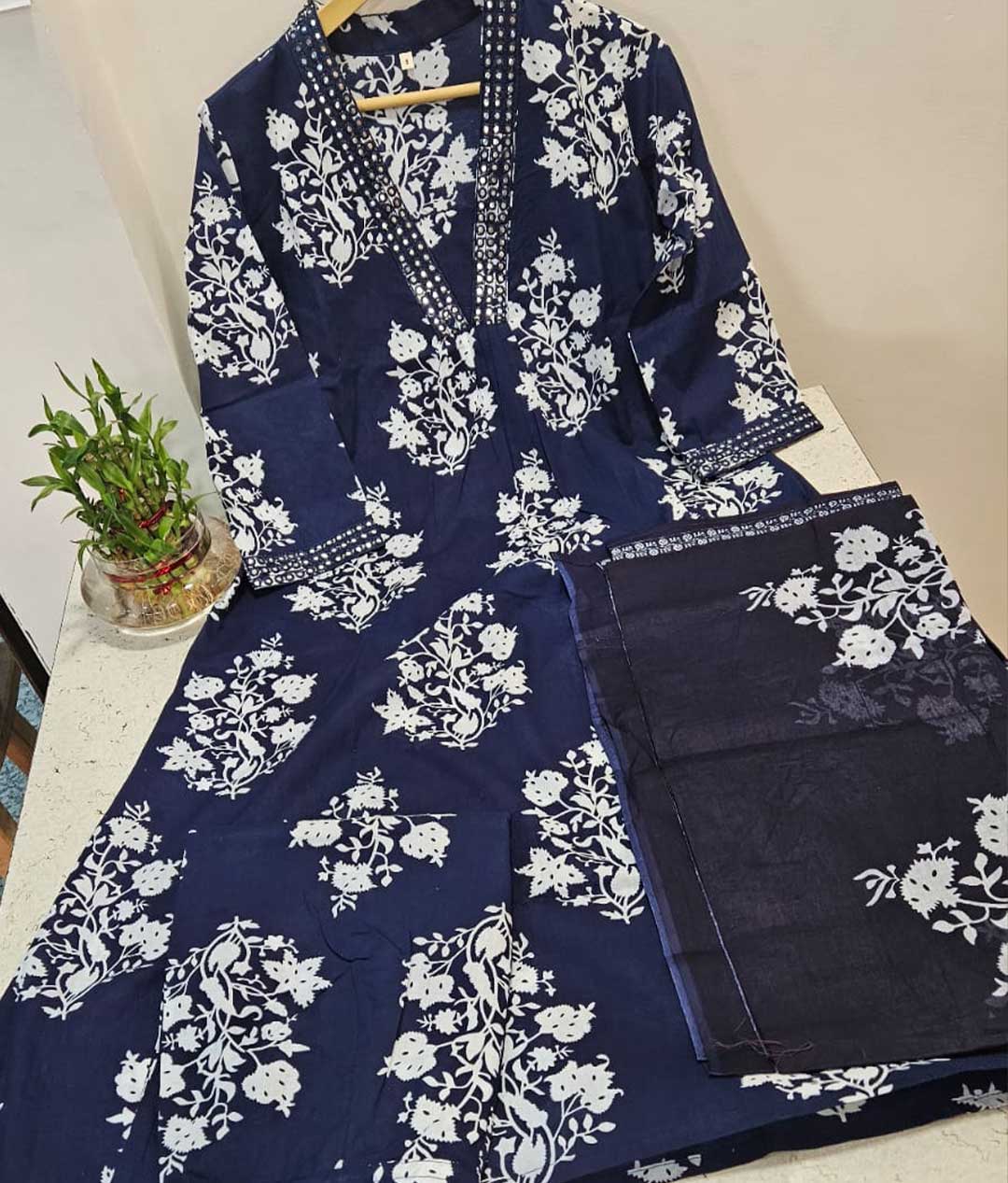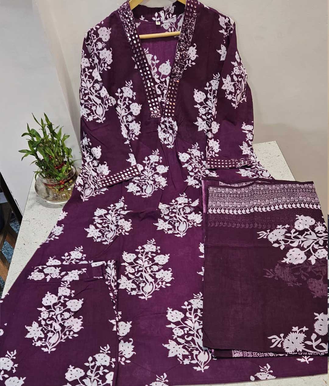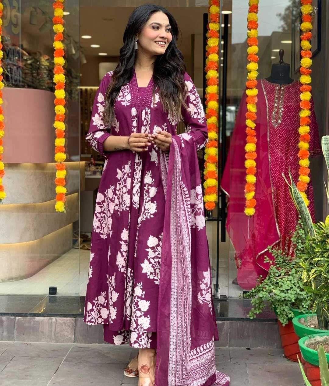 – Full Anarkali 3-piece set crafted from pure cotton.
