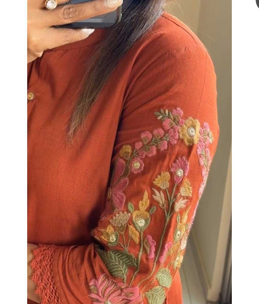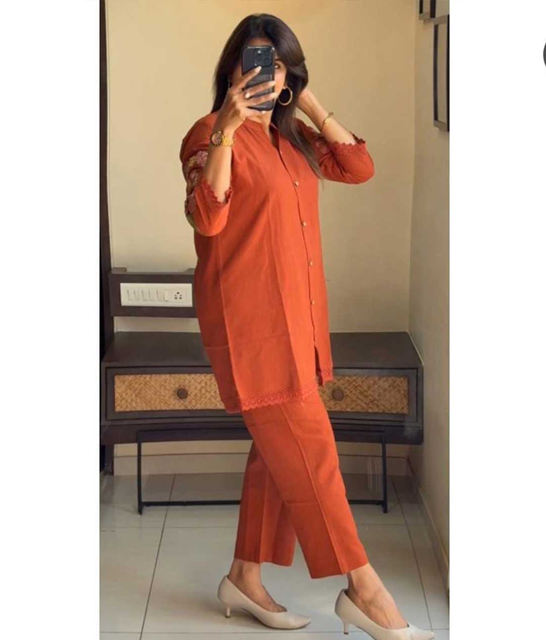 New designer cotton co-ord set embroidery in hand and back side Crotchet work lace in top and bottom